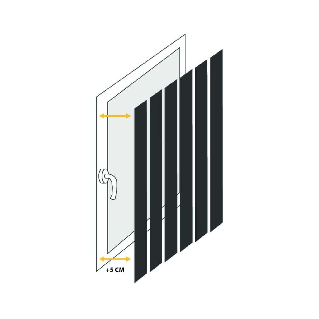 Determine the desired amount of overlap for your blind on both sides of the window recess, and measure this width accordingly. Keep in mind that due to the chain control and brackets, the fabric will be 35mm narrower than the specified size.